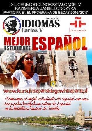 W październiku bieżącego roku uczennica klasy 3 c, Emilia Strzyżewska została wytypowana przez naszą szkołę do udziału w stypendium w Sewilli w Hiszpanii, zaproponowanego przez Escuela de Idiomas  Carlos V.