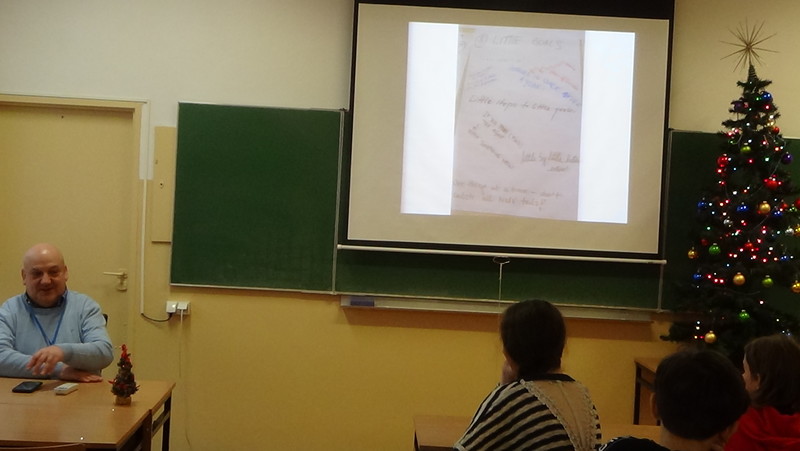 Klasy humanistyczno-pedagogiczne 1B, 1H, 2B i 3B uczestniczyły w dniu 12 grudnia w spotkaniach z dyrektorem Schroniska i Noclegowni dla Bezdomnych Mężczyzn, panem Tomaszem Jurkiewiczem. Uczniowie zostali zapoznani z problemem bezdomności, przyczynami, z powodu których ludzie tracą dach nad głową, a także sposobami pomocy.